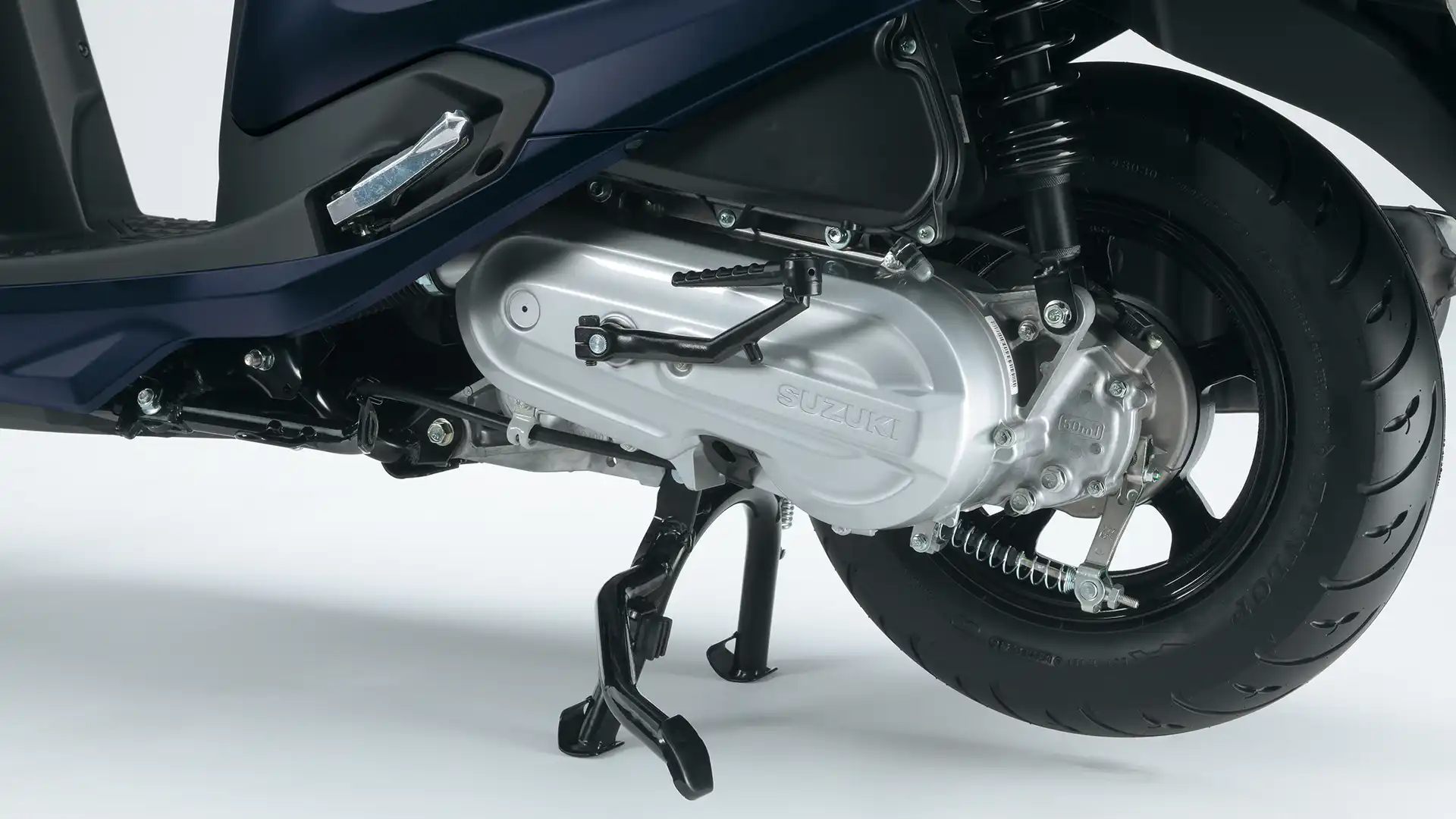 Zračno hlajen motor z elektronskim vbrizgom goriva ima dodatno zmanjšano notranje trenje, kar še izboljša učinkovitost, hkrati pa ohranja preizkušeno in zanesljivo zasnovo. Address je znan po svoji legendarni zanesljivosti in vzdržljivosti – in to se ne bo spremenilo. Zahvaljujoč Suzukijevemu sistemu Easy Start zadostuje že en sam pritisk na zagonski gumb; sistem samodejno zaganja motor, dokler se ne zažene. Tudi v primeru prazne baterije ni skrbi – nožni zaganjalnik (kickstarter) je ostal del opreme.